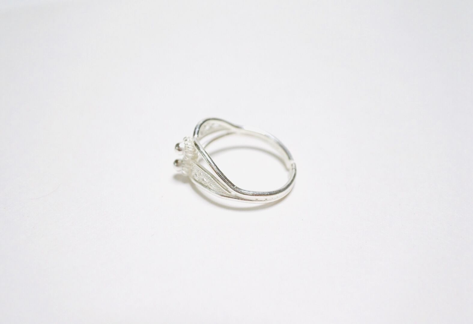 髪の毛ほどの細さの銀線を撚り合わせ、様々な形にしたものをシルバーのフレームに嵌め込んで作ります。