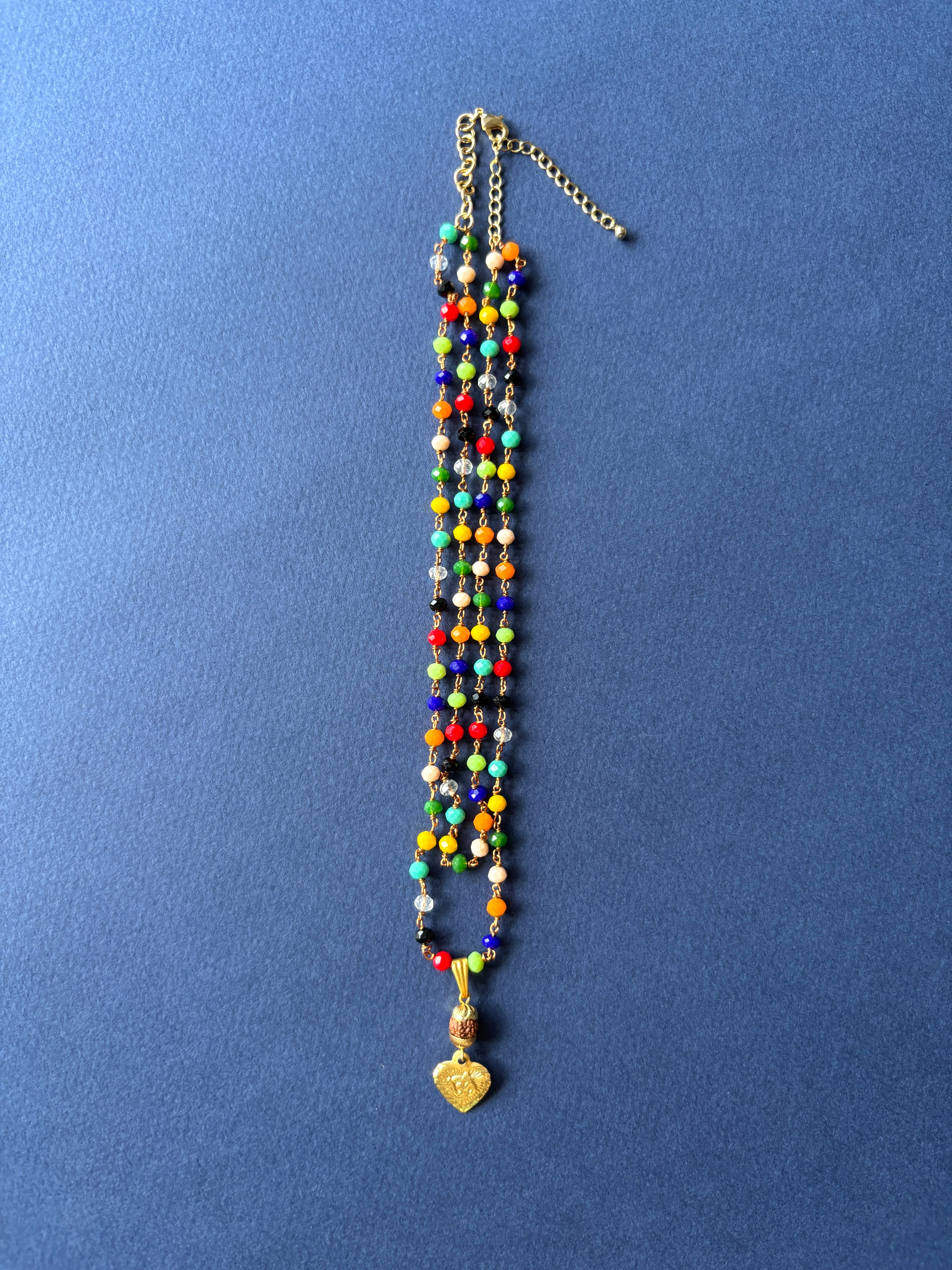 ネックレスに連なる色とりどりのビーズは、