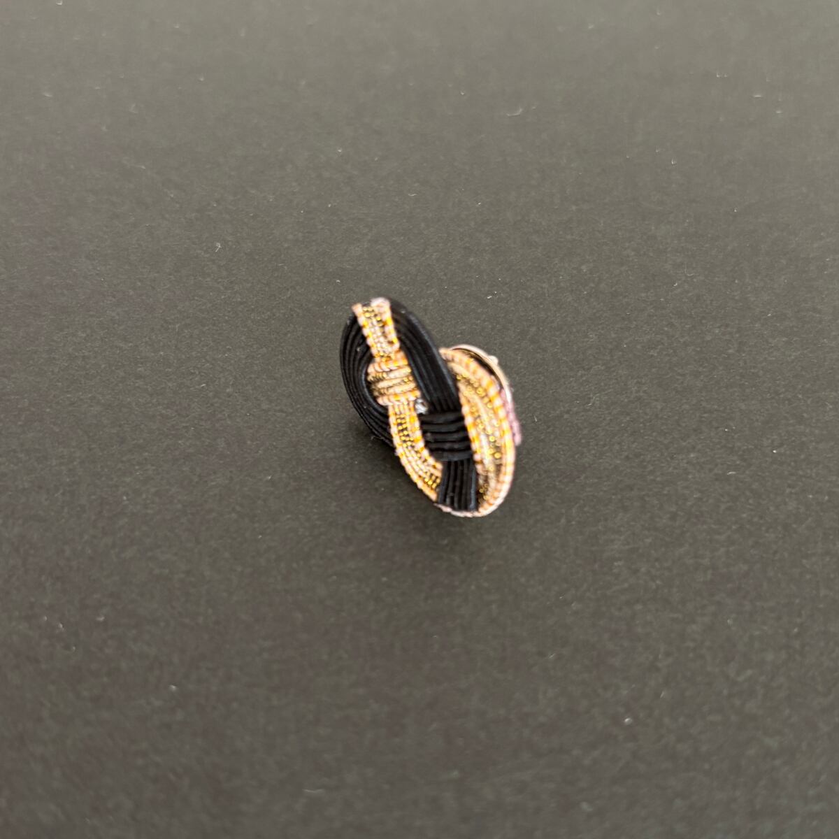 シックで重厚な佇まいの中に個性が光る、ラペルピン「煌黒」。