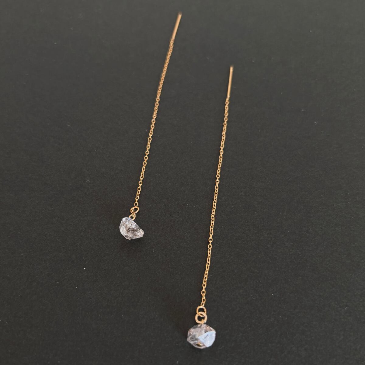 ハーキマーダイヤモンドクリスタル アメリカンチェーンピアスゴールド