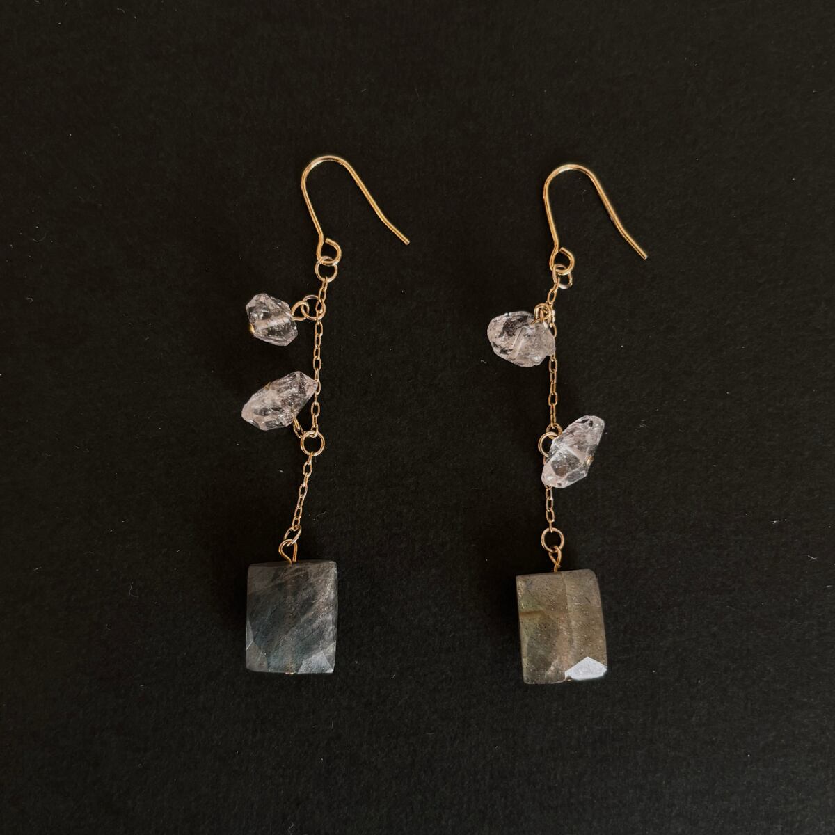 ラブラドライト × ハーキマーダイヤモンド 両耳ピアスゴールド