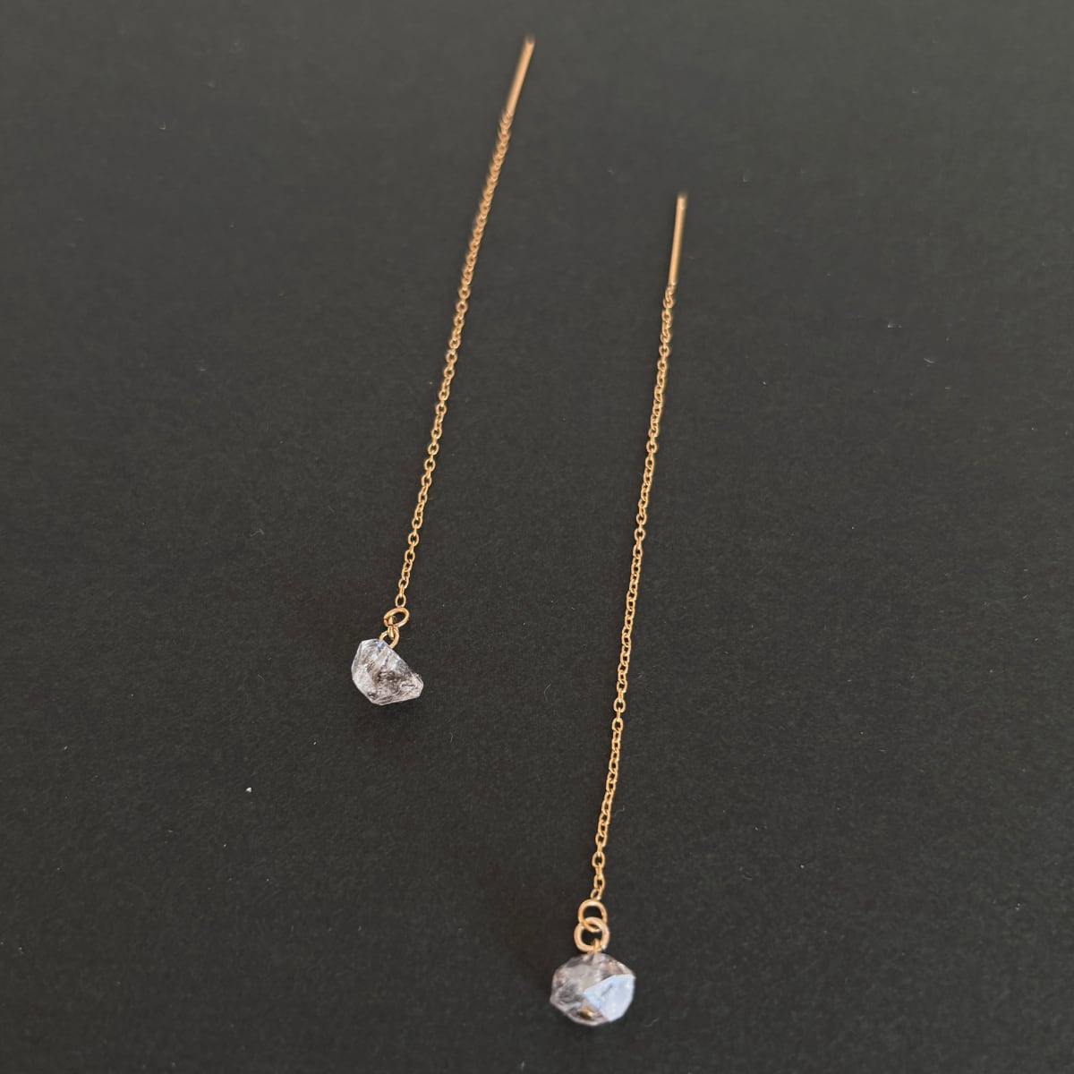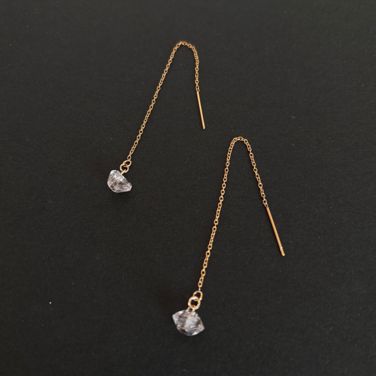 ハーキマーダイヤモンドクリスタル 両耳アメリカンチェーンピアスゴールド